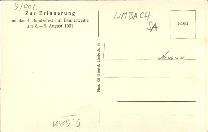 30727124 Limbach Reichenbach Bundesfest Bannerweihe postalisch nicht gelaufen KatCode: 11110014178320