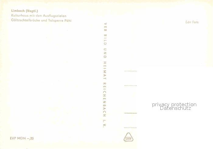 72680087 Limbach Reichenbach Kulturhaus Goeltzschtalbruecke Talsperre postalisch nicht gelaufen Erhaltung siehe scans [LiesaD40] KatCode: 11110014178320