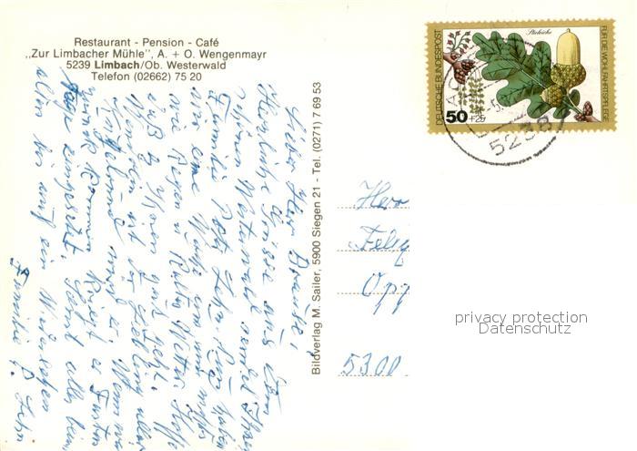 73659881 alte Postkarte Limbach Westerwald Restaurant Pension Cafe Limbacher Muehle Panorama postalisch gelaufen Erhaltung siehe scans [FriedD77] KatCode: 11110007143257