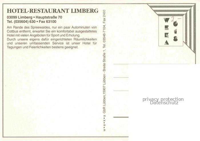 74026803 Limberg Kolkwitz Hotel Restaurant Limberg Tennisplatz Konferenzsaal Kahnfahrt postalisch nicht gelaufen Erhaltung siehe scans [FriedD77] KatCode: 11110012071244