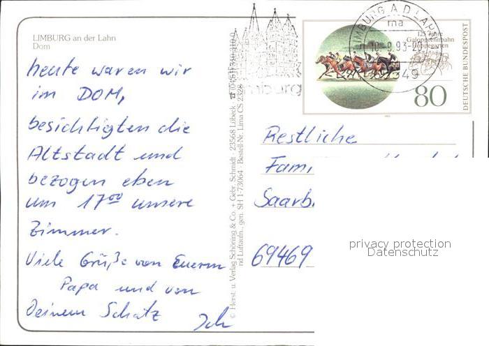 72022185 alte Postkarte Limburg Lahn postalisch gelaufen Erhaltung siehe scans KatCode: 11110006533009