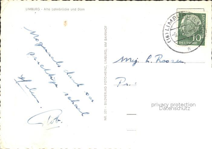 72478101 alte Postkarte Limburg Lahn alte Lahnbruecke und Dom postalisch gelaufen Erhaltung siehe scans KatCode: 11110006533009