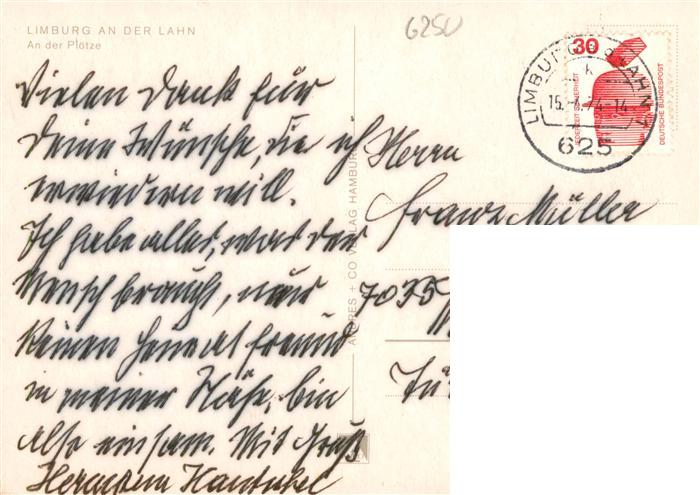 73936496 alte Postkarte Limburg Lahn An der Ploetze postalisch gelaufen Erhaltung siehe scans [FriedD77] KatCode: 11110006533009