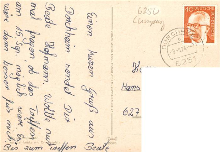 73936169 alte Postkarte Limburg Lahn Campingplatz und Autobahnbruecke postalisch gelaufen Erhaltung siehe scans [FriedD77] KatCode: 11110006533009