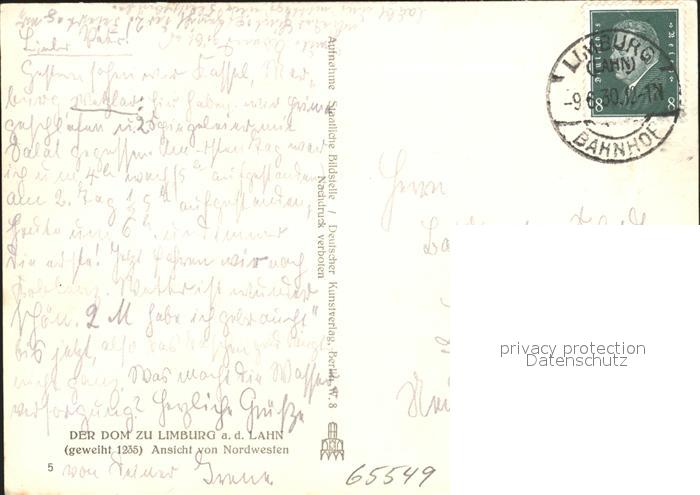 72127034 alte Postkarte Limburg Lahn Dom postalisch gelaufen Erhaltung siehe scans KatCode: 11110006533009