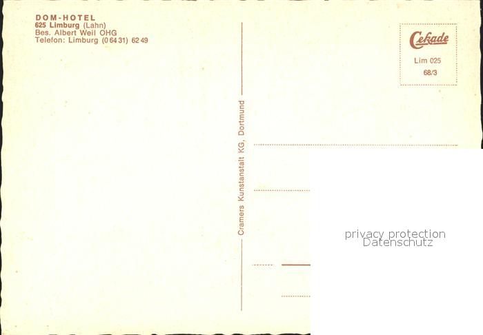 72271816 Limburg Lahn Dom Hotel Foyer postalisch nicht gelaufen Erhaltung siehe scans KatCode: 11110006533009