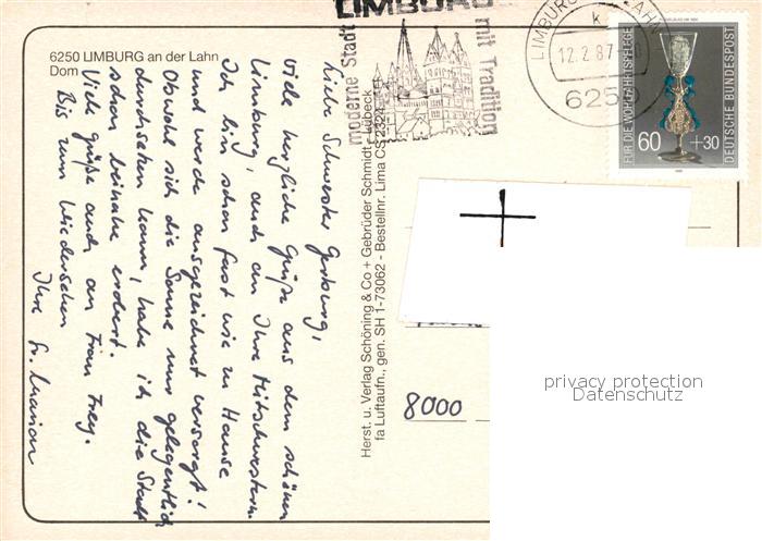 73080634 alte Postkarte Limburg Lahn Fliegeraufnahme Dom postalisch gelaufen Erhaltung siehe scans [KathaD81] KatCode: 11110006533009