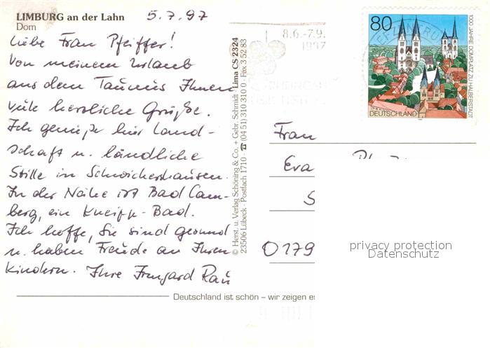 72843980 alte Postkarte Limburg Lahn Fliegeraufnahme Dom postalisch gelaufen Erhaltung siehe scans [AndreD76] KatCode: 11110006533009