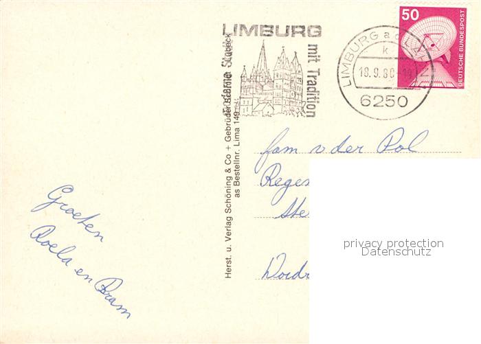 72928640 alte Postkarte Limburg Lahn Fliegeraufnahme Fachwerkhaeuser Schwimmbad Bruecke Kirche postalisch gelaufen Erhaltung siehe scans [WerneD78] KatCode: 11110006533009
