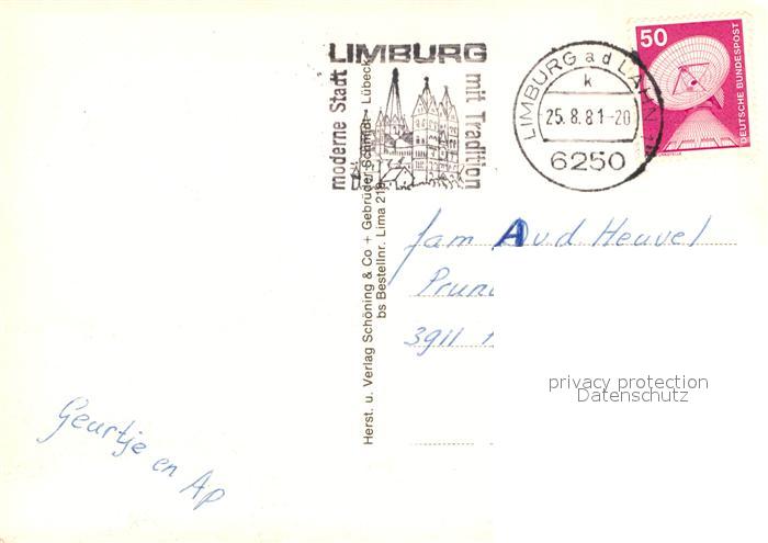 72929410 alte Postkarte Limburg Lahn Fliegeraufnahme Lahnpartie Ploetze Schloss Dom Kornmarkt postalisch gelaufen Erhaltung siehe scans [LiesaD40] KatCode: 11110006533009