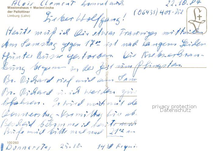 73154595 Limburg Lahn Fliegeraufnahme Missionshaus Marienkirche Pallottiner postalisch nicht gelaufen Erhaltung siehe scans [LiesaD40] KatCode: 11110006533009