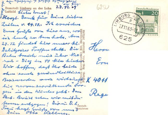 73936501 alte Postkarte Limburg Lahn Fliegeraufnahme mit Dom postalisch gelaufen Erhaltung siehe scans [FriedD77] KatCode: 11110006533009