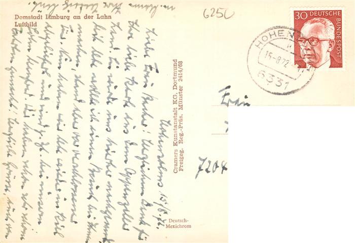 73936166 alte Postkarte Limburg Lahn Fliegeraufnahme mit Dom postalisch gelaufen Erhaltung siehe scans [FriedD77] KatCode: 11110006533009