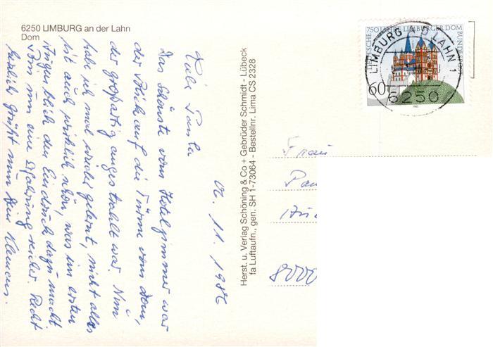 73879006 alte Postkarte Limburg Lahn Fliegeraufnahme mit Dom postalisch gelaufen Erhaltung siehe scans [WerneD78] KatCode: 11110006533009