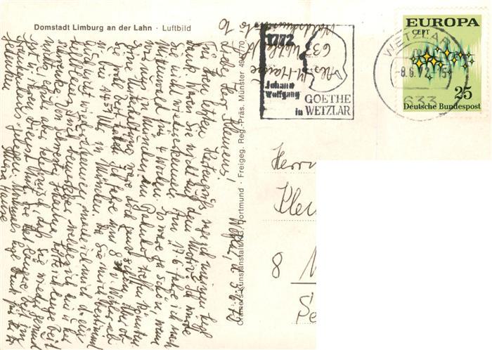 73879004 alte Postkarte Limburg Lahn Fliegeraufnahme mit Dom postalisch gelaufen Erhaltung siehe scans [WerneD78] KatCode: 11110006533009