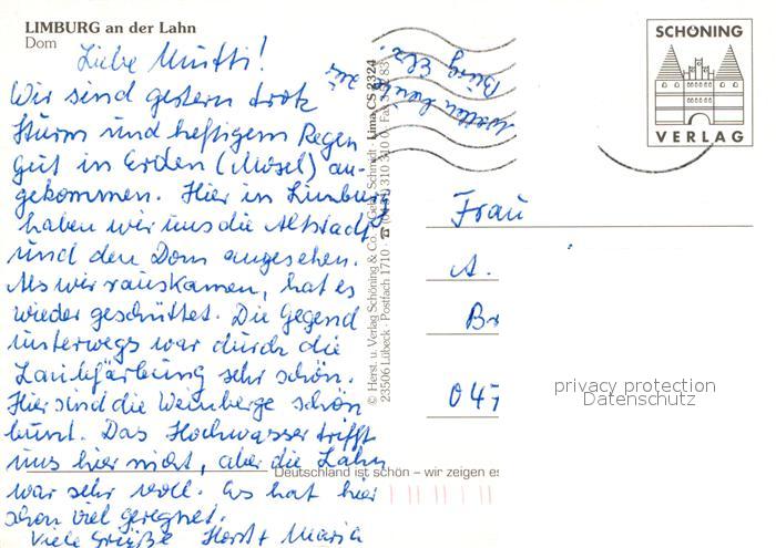 72987641 alte Postkarte Limburg Lahn Fliegeraufnahme mit Dom Lahnpartie postalisch gelaufen Erhaltung siehe scans [LiesaD40] KatCode: 11110006533009