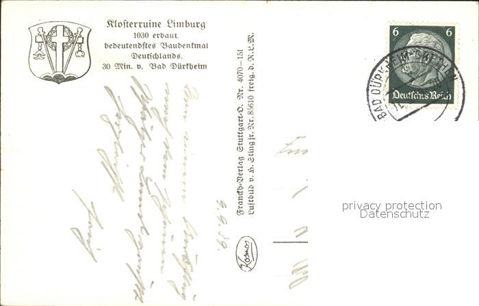 72144915 alte Postkarte Limburg Lahn Fliegeraufnahme mit Klosterruine mit Isenachtal postalisch gelaufen Erhaltung siehe scans KatCode: 11110006533009