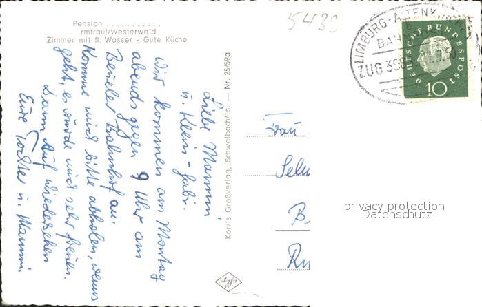 41606826 alte Postkarte Limburg Lahn Pension Irmtraut Wild postalisch gelaufen Erhaltung siehe scans KatCode: 11110006533009