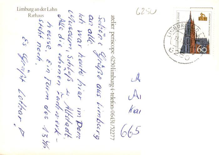 73936165 alte Postkarte Limburg Lahn Rathaus Zeichnung postalisch gelaufen Erhaltung siehe scans [FriedD77] KatCode: 11110006533009