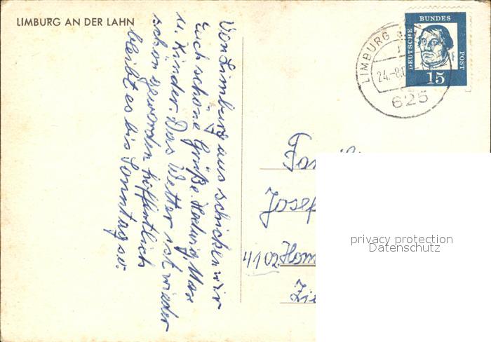 72527340 alte Postkarte Limburg Lahn Teilansicht mit Dom postalisch gelaufen Erhaltung siehe scans KatCode: 11110006533009
