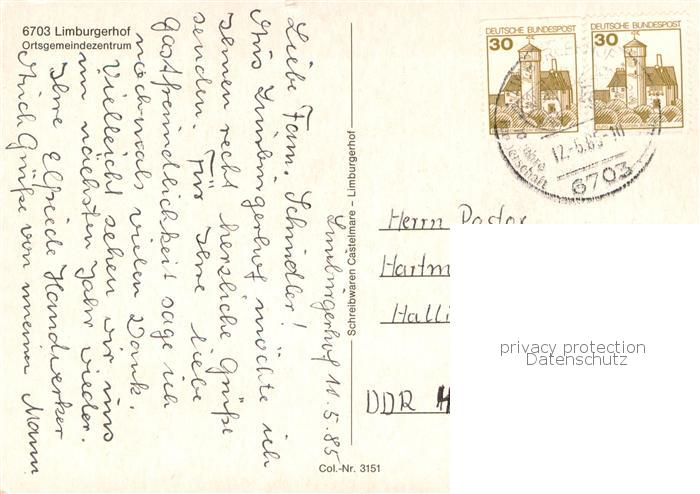 73767149 alte Postkarte Limburgerhof Ortsgemeindezentrum Details postalisch gelaufen Erhaltung siehe scans [FriedD77] KatCode: 11110007338017