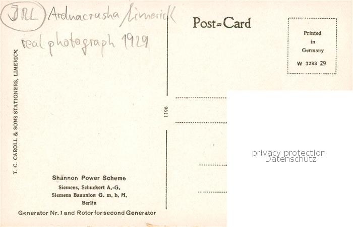 Limerick Ireland Generator Nr 1 and Rotor for second Generator postalisch nicht gelaufen Erhaltung siehe scans [WerneD78]