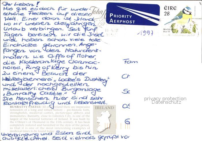 old postcard Limerick Irland Bunratty Castle and Folk Park postalisch gelaufen Erhaltung siehe scans [WerneD78 kt116box]