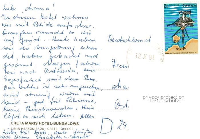 old postcard Limin Hersonissou Crete Greece Creta Maris Hotel-Bungalows m. Pool postalisch gelaufen Erhaltung siehe scans [LiesaD40]