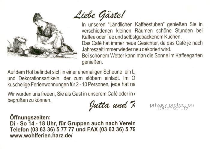 73651697 Limlingerode Laendliche Kaffeestuben Cafe postalisch nicht gelaufen Werbekarte (keine Postkarte) Erhaltung siehe scans [FriedD77] KatCode: 11110016062062