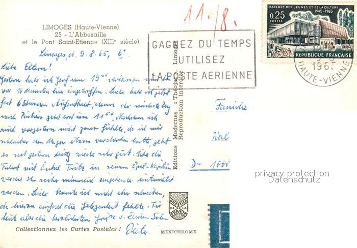 13044427 carte postale Limoges Haute Vienne Abtei Panorama postalisch gelaufen Erhaltung siehe scans [KathaD81] KatCode: 11170087287085