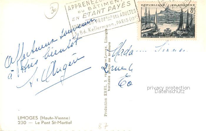13485863 carte postale Limoges Haute Vienne Le Pont St Martial postalisch gelaufen Erhaltung siehe scans [WerneD78] KatCode: 11170087287085