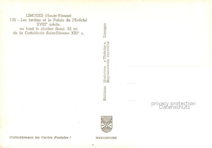 13578352 Limoges Haute Vienne Les jardins et le Palais de l’Eveche au fond le clocher de la Cathedrale Saint Etienne postalisch nicht gelaufen Erhaltung siehe scans [WerneD78] KatCode: 11170087287085