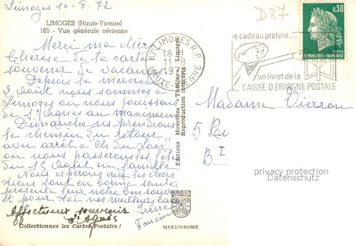 13583115 Limoges Haute Vienne Vue generale aerienne postalisch gelaufen Erhaltung siehe scans [WerneD78] carte postale Wern Katcode 11170087287085
