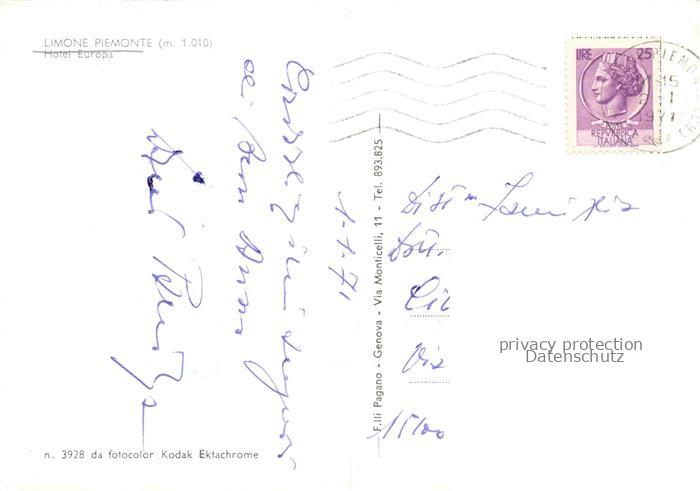 74088097 old postcard Limone Piemonte Cuneo Mondovi Piemonte IT Hotel Europa postalisch gelaufen Erhaltung siehe scans [WerneD78] KatCode: 11240