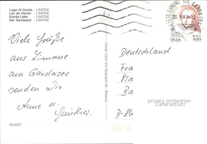 old postcard Limone sul Garda Boot Faehre Promenade postalisch gelaufen Erhaltung siehe scans