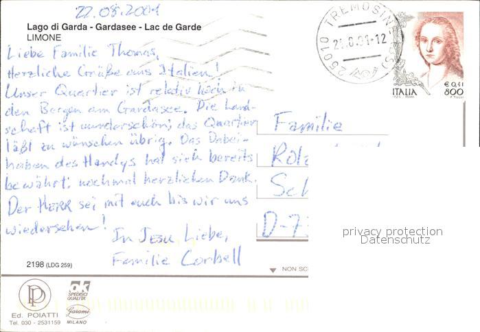old postcard Limone sul Garda Fliegeraufnahme Hafen Ortspartie postalisch gelaufen Erhaltung siehe scans