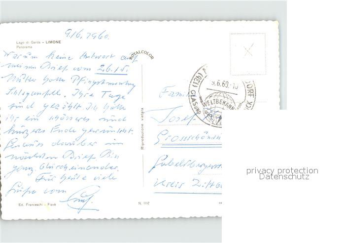 old postcard Limone sul Garda Gesamtansicht postalisch gelaufen Erhaltung siehe scans
