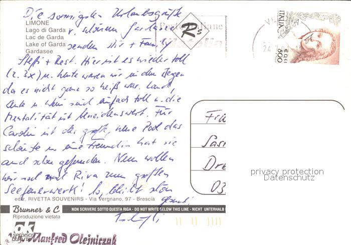 old postcard Limone sul Garda Hafen Seepartie postalisch gelaufen Erhaltung siehe scans