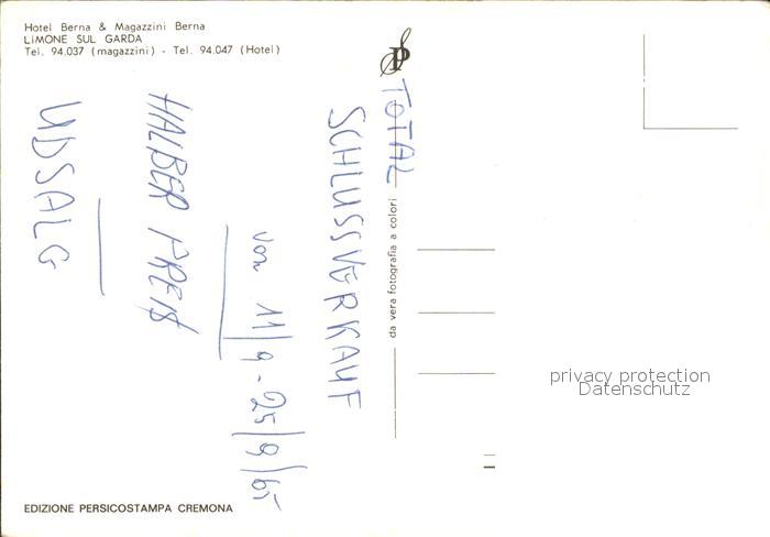 Limone sul Garda Hotel Berna e Magazzini Berna postalisch nicht gelaufen Erhaltung siehe scans