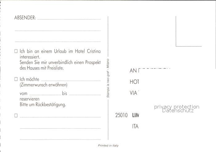 Limone sul Garda Hotel Cristina postalisch nicht gelaufen Werbekarte (keine Postkarte) Erhaltung siehe scans