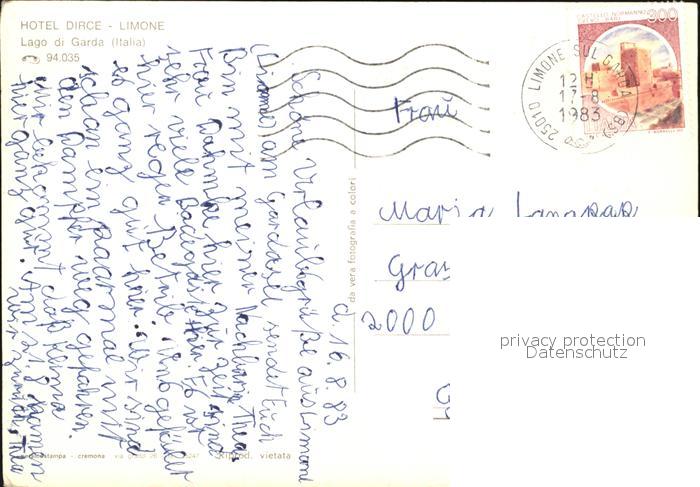 old postcard Limone sul Garda Hotel Dirce postalisch gelaufen Erhaltung siehe scans