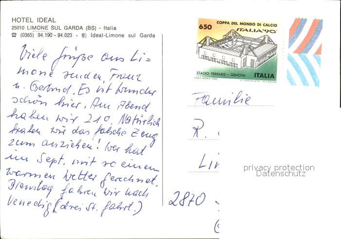 Limone sul Garda Hotel Ideal postalisch nicht gelaufen Erhaltung siehe scans