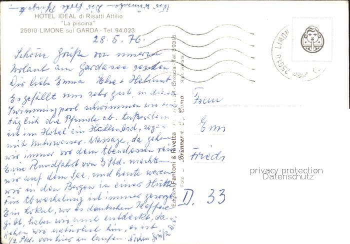 old postcard Limone sul Garda Hotel Ideal Risatti Attilio postalisch gelaufen Erhaltung siehe scans