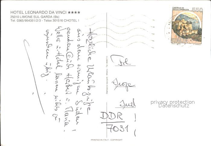 old postcard Limone sul Garda Hotel Leonardo da Vinci postalisch gelaufen Erhaltung siehe scans