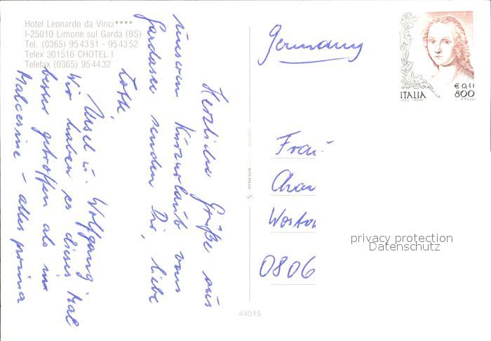 Limone sul Garda Hotel Leonardo da Vinci am Gardasee Swimming Pool postalisch nicht gelaufen Erhaltung siehe scans