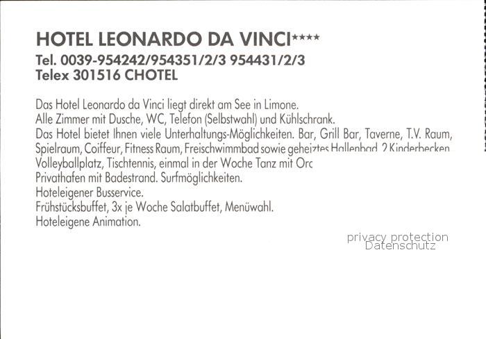 Limone sul Garda Hotel Leonardo da Vinci Park postalisch nicht gelaufen Werbekarte (keine Postkarte) Erhaltung siehe scans