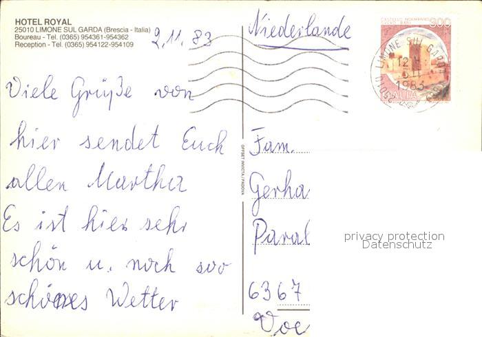 old postcard Limone sul Garda Hotel Royal Gastraum Swimmingpool postalisch gelaufen Erhaltung siehe scans [WerneD78]