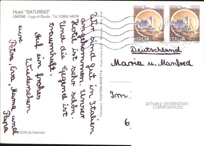 old postcard Limone sul Garda Hotel Saturno postalisch gelaufen Erhaltung siehe scans