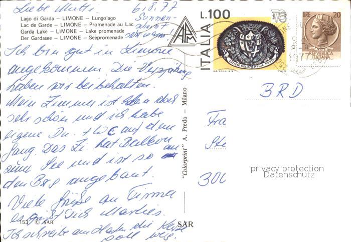 old postcard Limone sul Garda Promenade postalisch gelaufen Erhaltung siehe scans