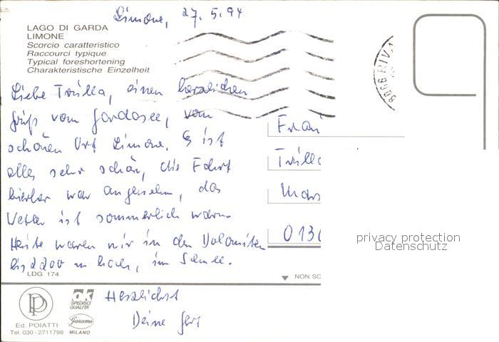 old postcard Limone sul Garda Teilansicht postalisch gelaufen Erhaltung siehe scans